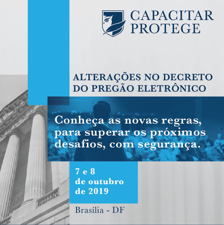 Em abril deste ano foi apresentada a minuta do novo decreto do pregão eletrônico. O texto traz diversas alterações e a principal é sobre a obrigatoriedade do uso do pregão pelos órgãos da Administração Pública federal direta, autárquica, fundacional e os fundos especiais. Diante da importância do tema, o Instituto Protege realizará, nos dias 7 e 8 de outubro, o curso Alterações no Decreto do Pregão Eletrônico, em Brasília/DF.